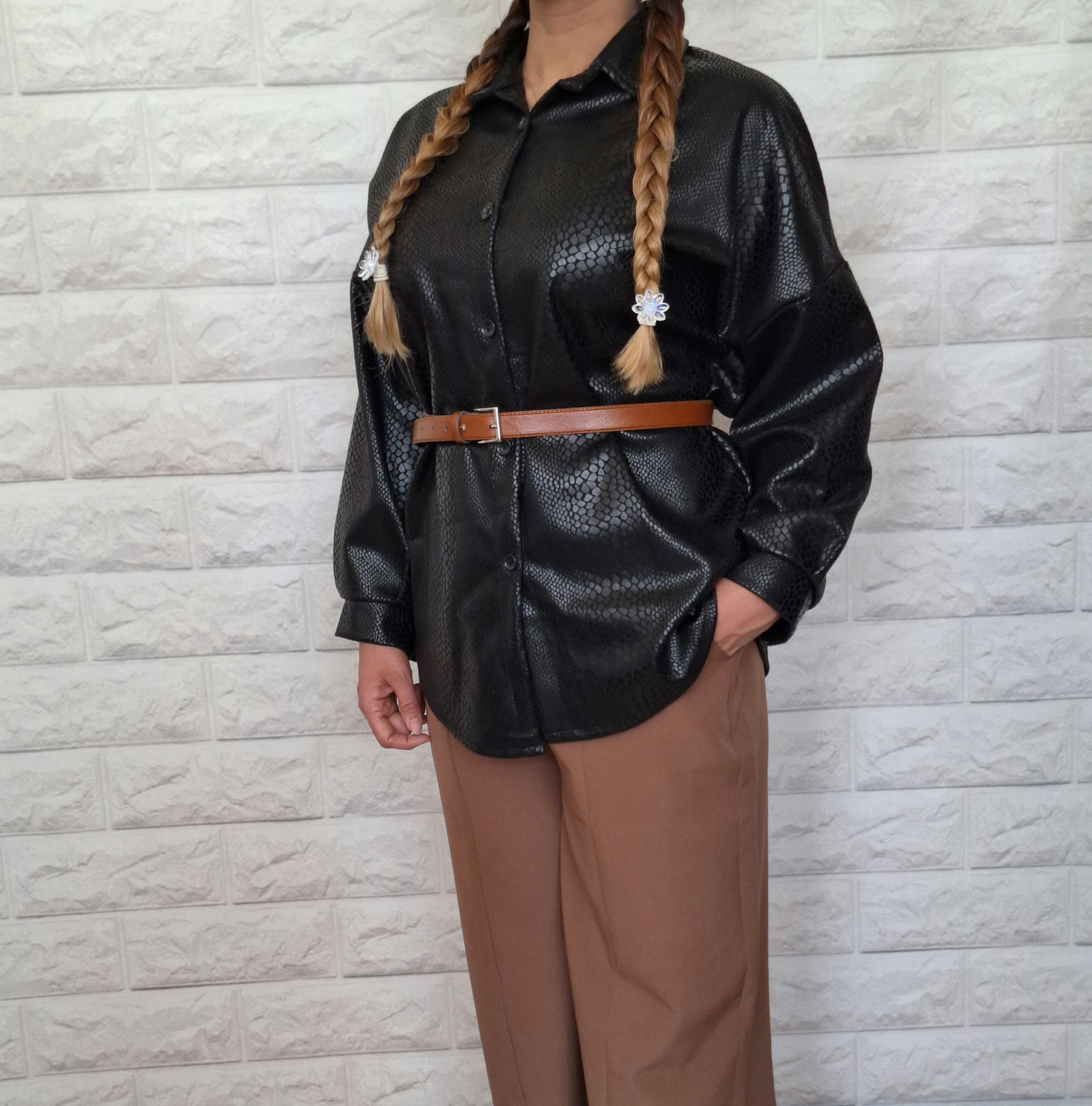 شومیز ساتن مشکی پلنگی