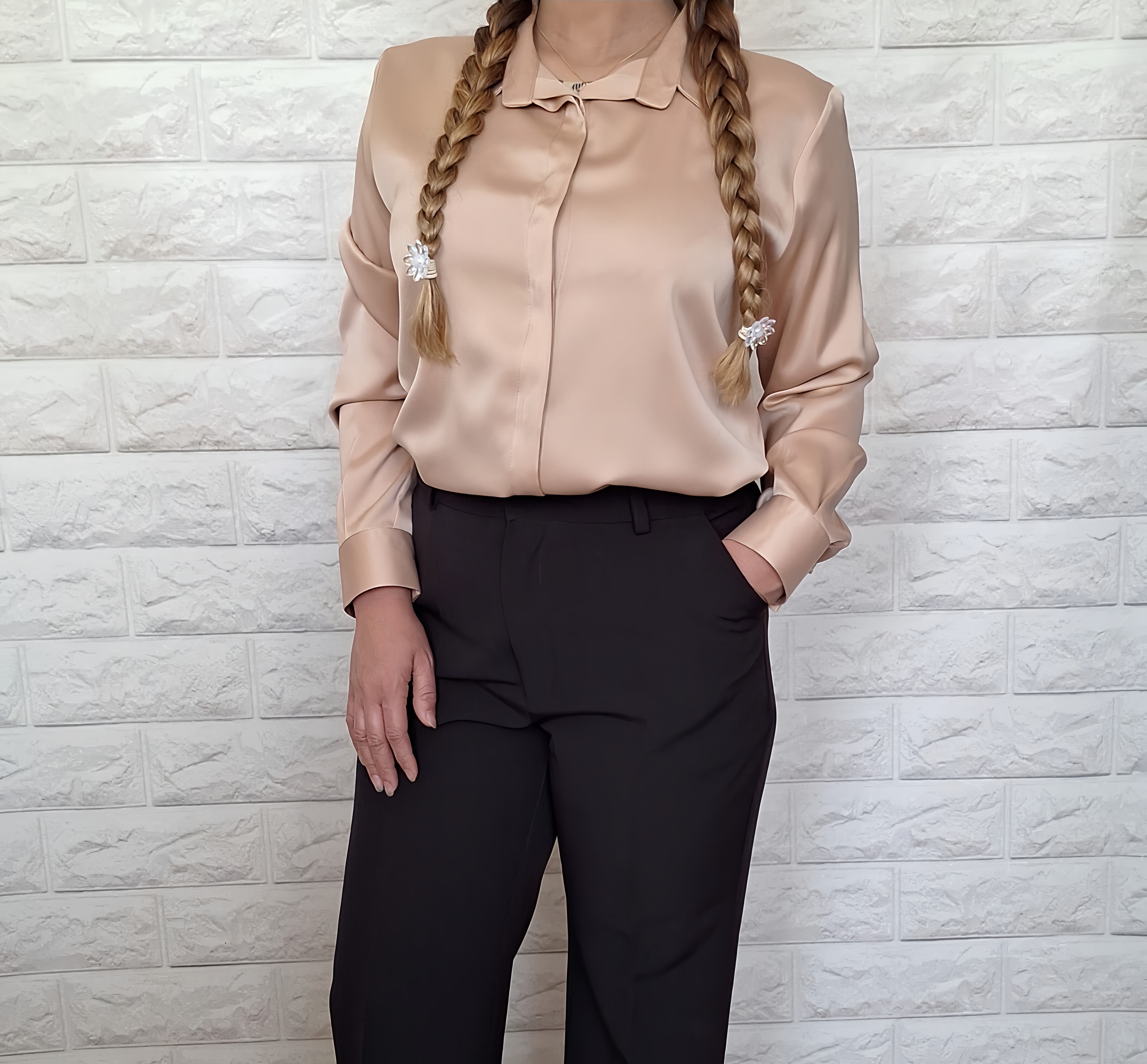 شومیز ساتن بژ